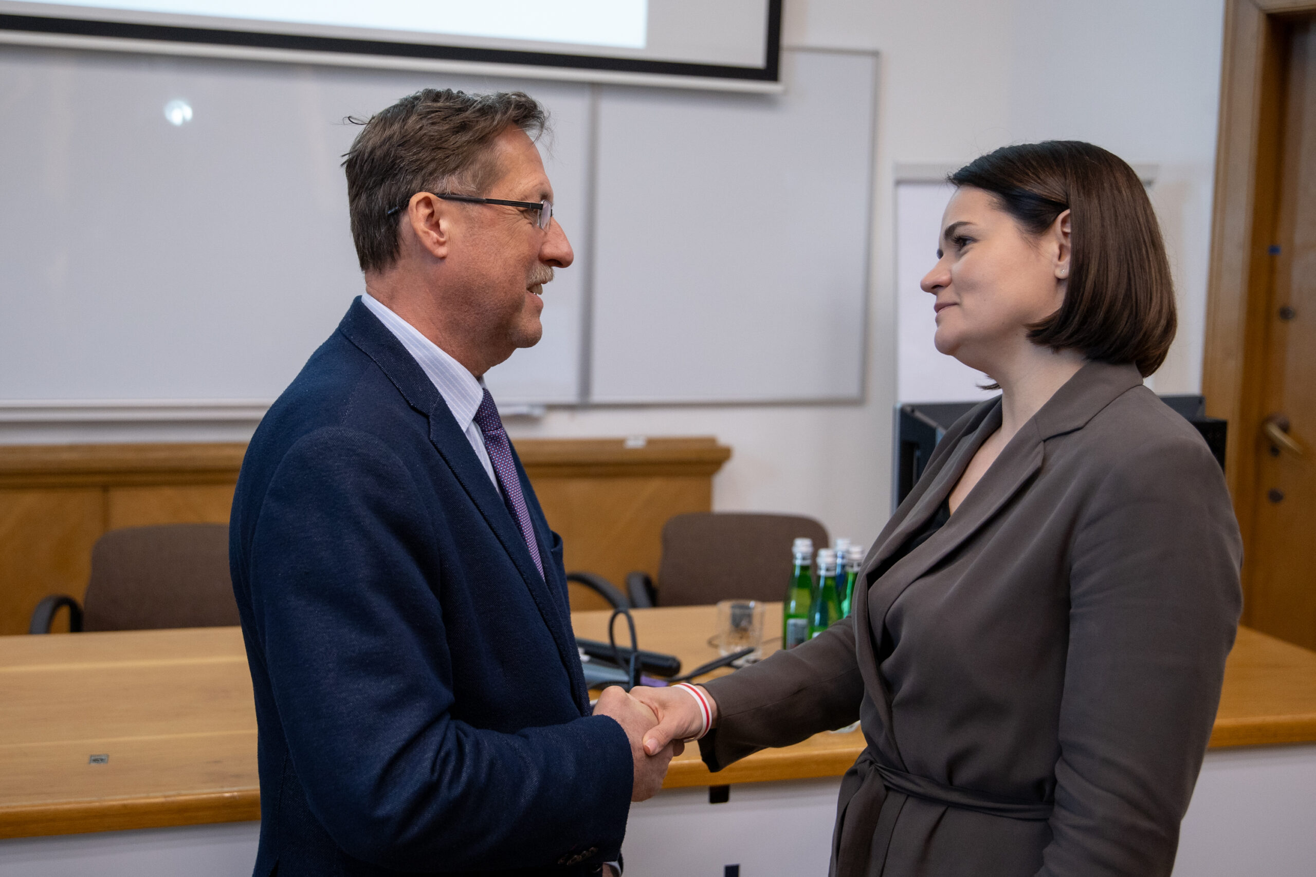 Mrs. Tsikhanouskaya was accompanied by Dr. Aleksandr Milinkievič, Chancellor of the Free Belarusian University, and Dr. Aliaksandr Lahvinets, a political scientist, lecturer, publicist, and prominent civic and political activist, visiting scholar at Civitas University.
